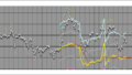 トレンドライン(紫・黄緑)はある程度下げ、上向きになった。まとめると、日足・半日足ともに、反騰に入ることを示唆している。ネガティブな材料がなく普通であれば、そうなるはずだ。
