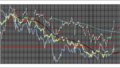 通常のバンドウォークは、太い紺のラインが高値になる。前回は、今回のバンドウォークを普通のそれと見なし予想したため、実際の値とずれてしまった。今後は、強いバンドウォークとして、予想を組み立てる必要がある。